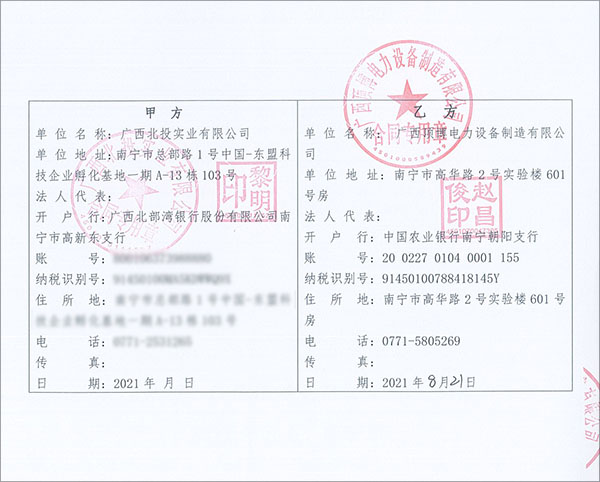 2021年8月21日,頂博電力與廣西北投實(shí)業(yè)有限公司成功簽訂一臺120KW
