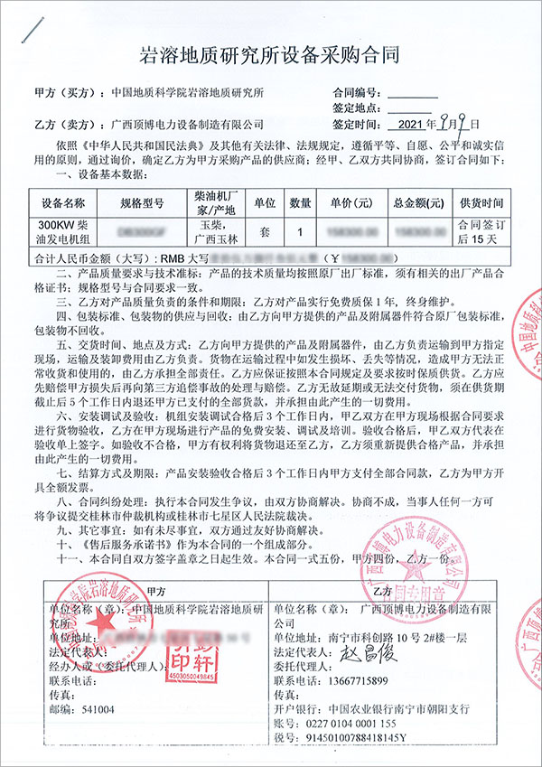 2021年9月9日,廣西頂博電力設(shè)備制造有限公司再度傳來捷報,中國地質(zhì)科學(xué)院巖溶地質(zhì)研究所成功訂購一臺
